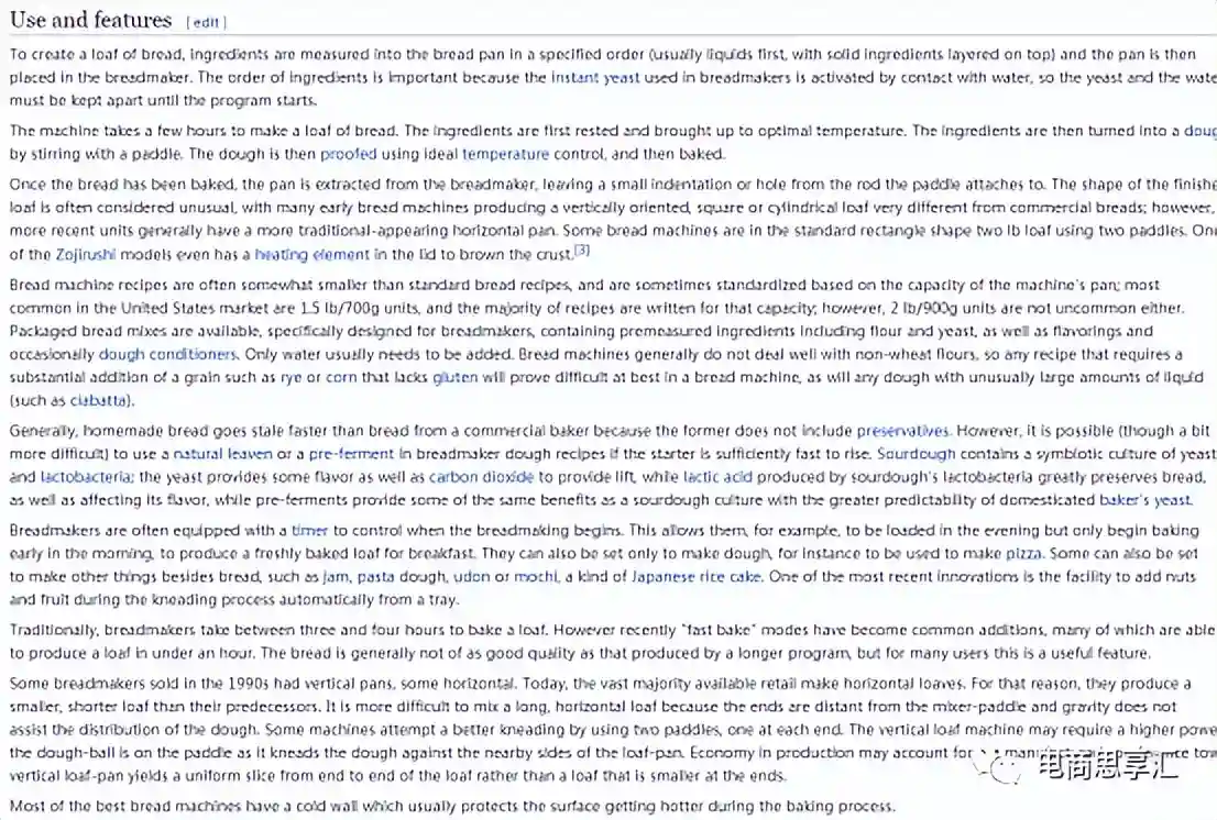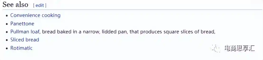 维基百科是非常权威的网站,里面关于某些词语的解释是非常全面和细致的,我们可以在这里找到关于我们业务相关的更多关键词。例如我在维基百科中输入:Breadmachine
