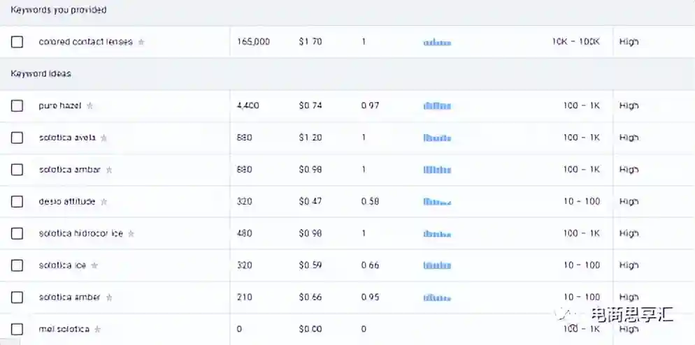 检查整个表格,删除掉明显与我们业务无关的关键词,特别是我们从其他关键词分析工具中导出的关键词,它使用广泛匹配,会推荐出一些和我们业务无关的关键词。