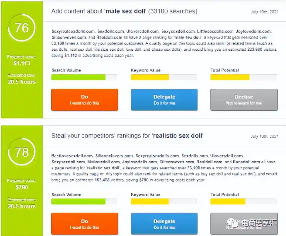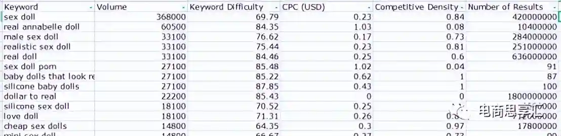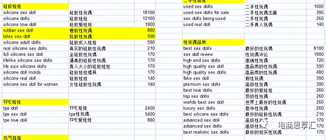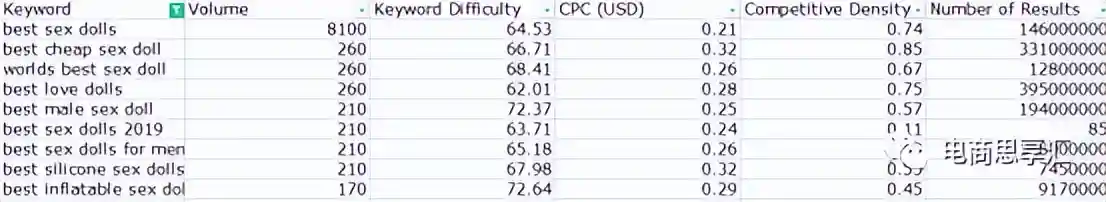 例如,我们的业务关键词是sexdoll(实体娃娃),关键词工具如果推荐了babydoll(洋娃娃),或者dollars(美金)这种词语明显和我们的业务无关的,需要删除的。